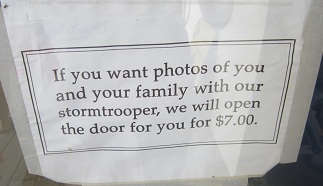 There was an actual, life size Storm Trooper costumer behind locked glass. The way he had it lit made it impossible to photograph it unless he opened the case.