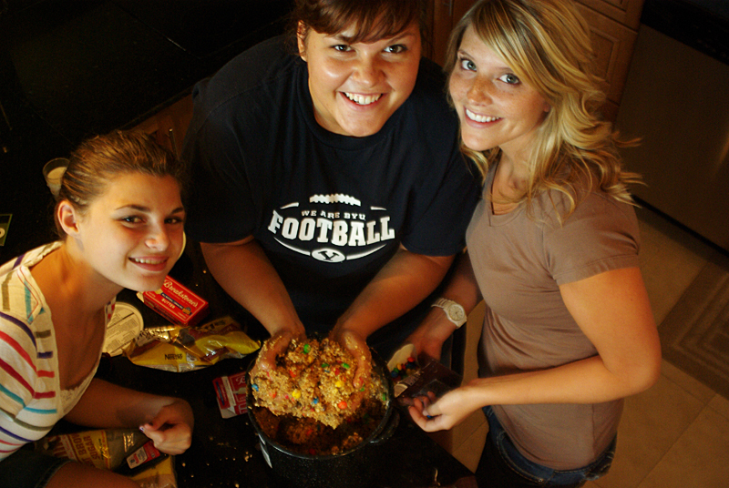 Andi, Michelle, and Katie making a batch of Monster Cookies. Katie's husband is also a med student.
