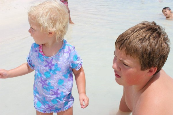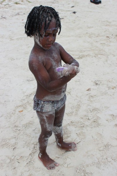 Le Gallion Beach is shallow and inside a huge bay so there are absolutely zero waves, making it a perfect place for little kids to play in the water and build sand castles. The gentleman standing up is Elder Wright, a full time senior missionary.