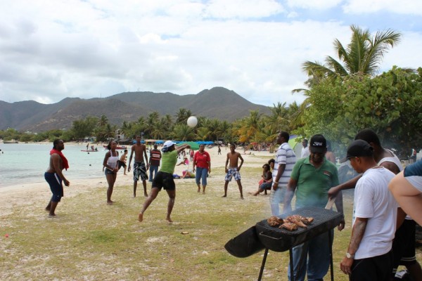 Beach volleyball while the meat cooks. That's George with the green shirt on the grill.