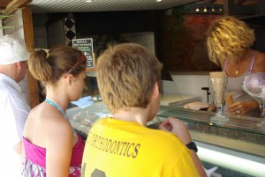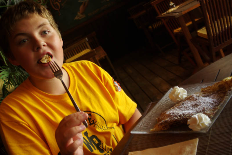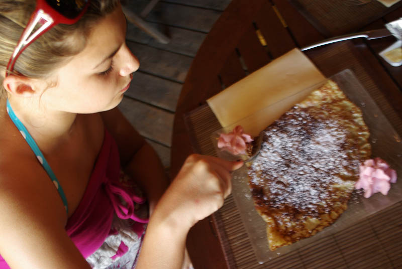 Some of the restaurants on the main strip in Grand Case have beautiful, open-air dining rooms right on the beach with tables overlooking the ocean.  We checked out a couple of those but we opted for a quaint looking little place off the water that serves crepes and ice-cream.    It was a good choice!