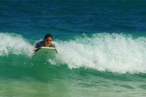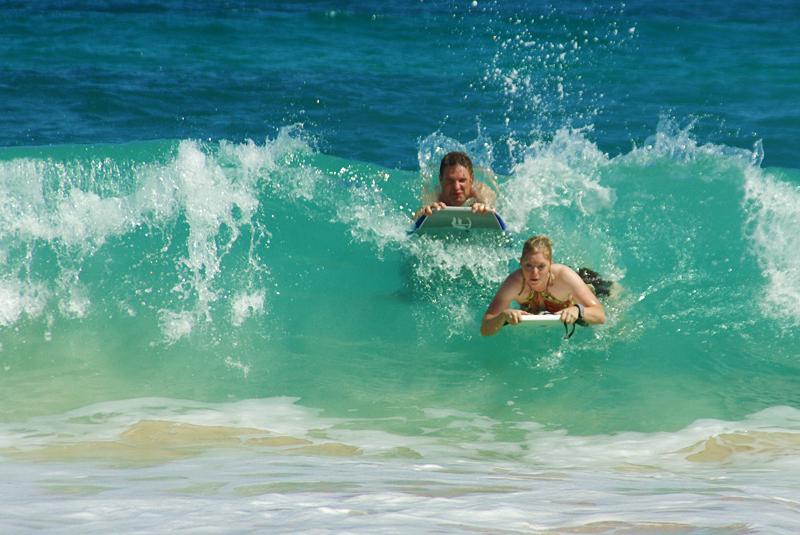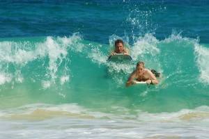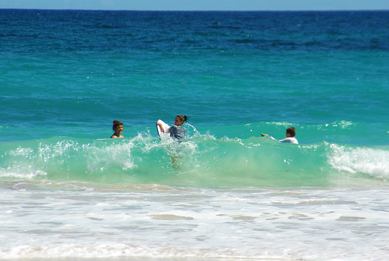 Once we got Carina off of the beach and into the water, it became evident where Andi acquired her innate skills at boogie boarding.Ok, so to be honest this isn’t really that hard. But so far it seems the girls are better at it than the boys. In the picture just above, Cari caught that wave but I didn’t. |