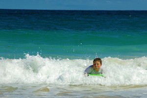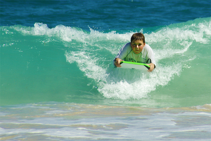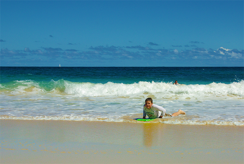 It took Tanner just a little bit longer to get the feel for boogie boarding, but once he figured out how, there was no stopping him. |