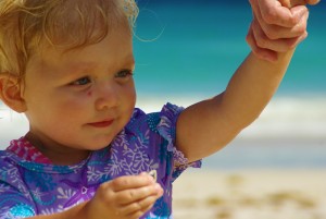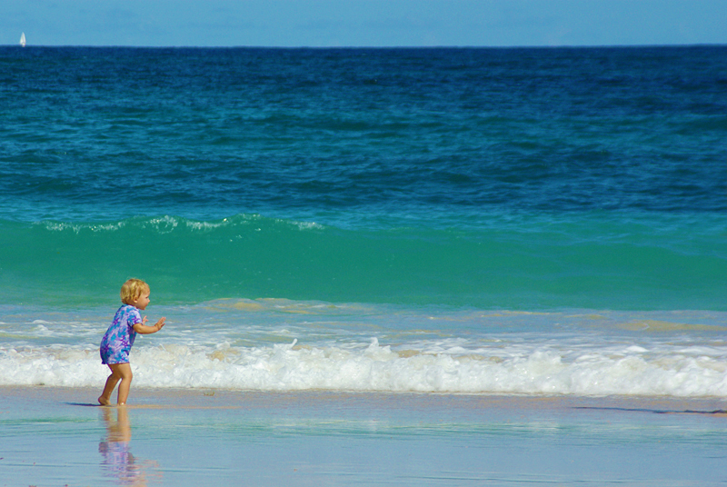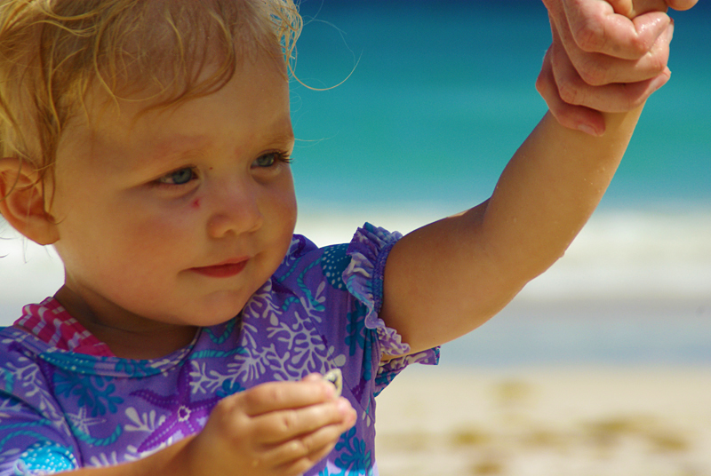 Emily, she does that hand-forward thing when something is about to happen that she doesn’t like. In this case she was saying, “NO NO NO” to the wave that was about to wash over her feet. After I took the photo she started to bawl and I had to run and pick her up.