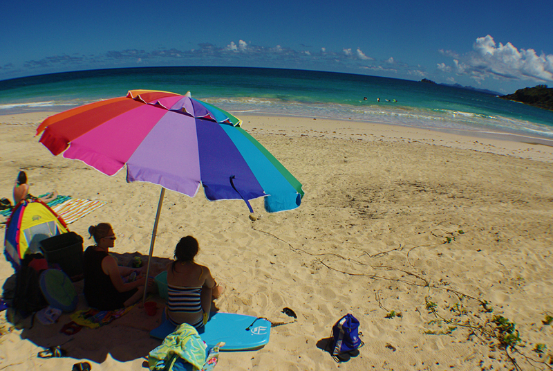 | Playing with the fish-eye lens. Kind of gives you a sense of how big and open this beach is. |