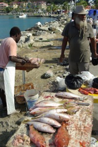 | The French city of Marigot is just a short drive around the lagoon from Cupecoy where we live. Before going there the first time I had this idea in my head that the French side probably wasn’t really all that French. After all, the Dutch side truly isn’t all that Dutch. Everyone on this side of the island speaks English and the US Dollar is the currency of choice.I was wrong. The French side actually is, as it turns out, French. And I find that quite enjoyable! It’s been a long time since I’ve been able to speak French substantially and I enjoy going over there and conversing. And also it doesn’t hurt that Marigot has an awesome outdoor market. |