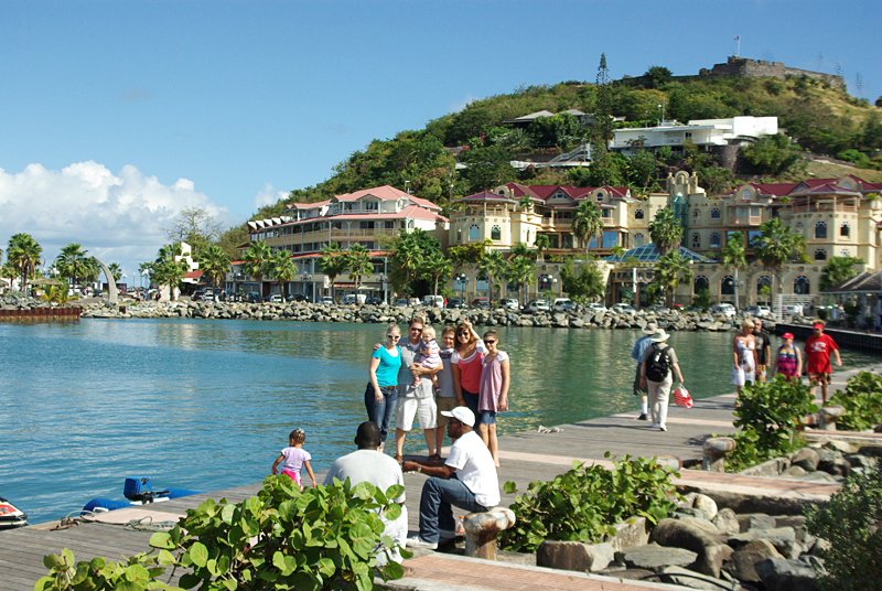 | A family shot in between the harbor and the market. Fort Louis can be seen in the upper right corner.(Photo by Matt Lew) |