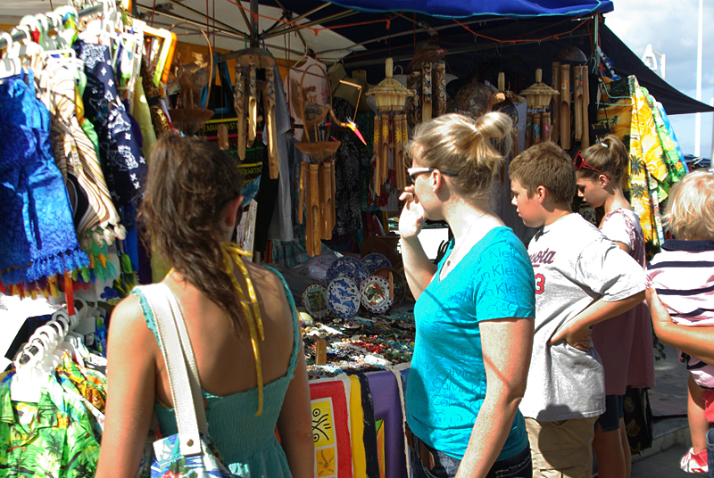 Last Saturday, the 18th of February, we were planning an entire day outing to the Marigot Market in the morning and then back to Guana Beach in the afternoon. Matt and Cecily Lew instigated the outing, and at first Cari was planning to sit this one out to study (again) but the rest of the family would have absolutely none of that. Saturday marked eight weeks since we’d been on the island, and she had yet to ever see anything past the walk from our condo to the school. We literally dragged her away from her books and kidnapped her into our outing.