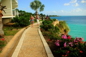 Mommy and Piper overlooking the Caribbean Sea from the cliff tops on the grounds of our condo complex.