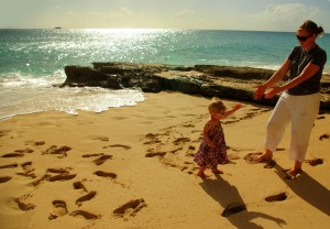 Carina and Piper on the beach. All the new sights and sounds were just a little unnerving, and she never let Mommy get too far away.