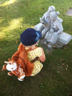 Piper checking out a statue in the sculpture garden on the campus of Brigham Young University. Grandpa Crookston took us all to the campus bookstore and treated each of three kids to a a new book of their choice.