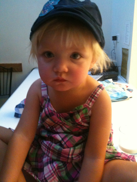 Piper sporting her new cap