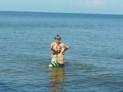 No, this is not the ocean. This is Tanner and Will playing in Lake of the Woods, the 7th largest lake in the 48 states after the 5 Great Lakes and The Great Salt Lake. (photo by Win Anderson)