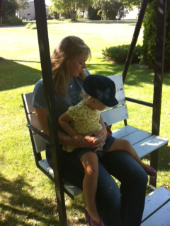 Carina and Andi on a swing in the yard of Cari’s grandmother